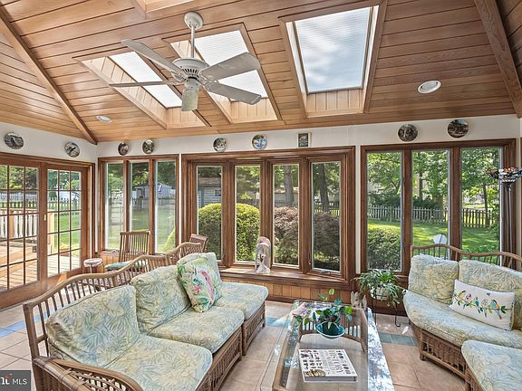 Welcome to this beautifully maintained “Stonewyck” home nestled on a corner lot in the heart of "Old" Tenby Chase, boasting 3 spacious bedrooms, 3 full baths, a finished basement, and a sun-drenched Sun Room addition. Cherished by the same homeowner for 50 years, this home combines tradition and functionality, waiting for the next chapter to begin. Step inside to the inviting lower level, where tile flooring greets you in the entryway. Head up to the formal living room, showcasing rich wood flooring and elegant crown molding, or continue straight back to the cozy family room with a brick gas fireplace, perfect for relaxing evenings. The formal dining room boasts wood floors, chair rail, and crown molding that is perfect for hosting dinner parties or holiday gatherings. The kitchen is a warm and functional space, featuring wood cabinetry, updated neutral countertops, tile backsplash, and matching wood floors. Off the family room, step through French doors into the 20’ x 11’ sunroom that is surrounded by windows, skylights, and recessed lighting, offering year-round enjoyment and access to the backyard with a deck for outdoor entertaining. A full bath with walk-in shower completes the lower level. Upstairs, the primary suite includes a private full bath with a walk-in shower. Two additional generously sized bedrooms share a beautifully updated full bath. Need more space? The finished basement provides flexible living with multiple rooms separated by French doors, which is perfect for a home office, gym, media room, or playroom. Plus, the NEWER ROOF is approximately 4 years old! Don’t miss your chance to own this spacious and versatile home in one of Delran’s most sought-after neighborhoods! Conveniently located near Rt. 130 and major highways, this home provides easy access to shopping, dining, and entertainment. With its close proximity to Philadelphia, you'll experience the best of suburban living with city amenities just a short drive away. And if you have little ones, Tenby Chase Swim Club and soccer fields are only minutes away. This home truly is the epitome of pride of ownership with every detail reflecting meticulous care and thoughtful updates. Don’t miss your opportunity to own this one-of-a-kind home—schedule your private showing today!