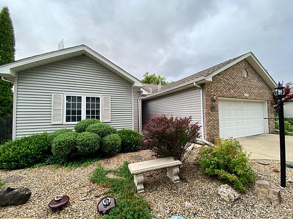 Ranch home overlooking pond and greenbelt in Barrington Ridge near St Mary's in Hobart. Vaulted ceilings and double sided fireplace featured in this 2 bedroom plus den home. Good sized bedroom with private ensuite featuring walk-in closet. 2 car garage, with access to HVAC and water heater. Sun porch off kitchen and master bedroom with extra storage closet. Eat in kitchen with ample cabinetry with cherry finish and all appliances stay. Private courtyard-type patio with brick pillar gate access front and back. HOA fees $270 a quarter which includes lawn maintenance, snow removal up to the front door and common areas. With a little fresh carpeting, this can be a great home for years to come! Please allow 48 hours for offer response.