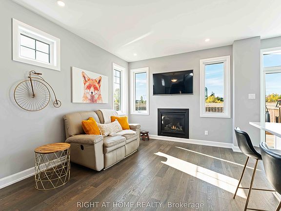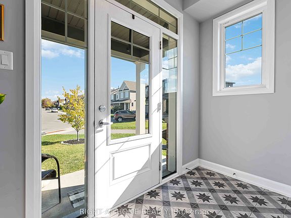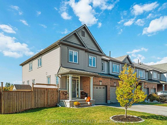 Ultra Rare opportunity. This stunning, end-unit 4-bedroom, 3-bathroom townhome sits on an oversized pie-shaped lot, siding onto a path, with no rear neighbours. Over $30k in builder upgrades. Properties like this don't become available very often! Ideally located in the heart of the community, you're just a short walk to schools, shopping, parks, and amenities, everything right at your doorstep. Step inside to a bright and welcoming foyer and a stylish powder room. Mud room with convenient garage access. The open-concept main level impresses with 9 ceilings, elegant hardwood floors, a natural gas fire place and modern pot lights throughout. Perfect for entertaining, the spacious living and dining area flows into a gourmet kitchen featuring a large island, quartz countertops, stainless steel appliances and a cozy breakfast nook. Upstairs, discover four generous sized bedrooms, a modern family bath, and the convenience of second-floor laundry. The primary suite offers an en-suite and walk-in closet. The fully finished lower level expands living space with a large family room with built in speakers, a rough-in for a 4th bathroom and ample storage. Private fully fenced backyard, with a hot tub, expansive deck, and no easement from neighbours! Perfect for relaxing or entertaining in complete privacy. This beautiful home combines comfort, style, and location perfect for growing families looking to settle in one of Stittsville's most desirable areas. North-Easterly orientation provides loads of natural sunlight all day long!