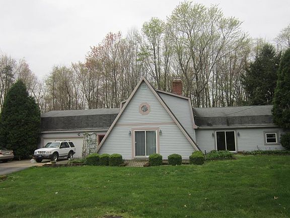 A VERY SPECIAL PROPERTY! Situated in a beautifully wooded location on @ 4+ Acres, this charming 3 BR, 2B A-frame style home has great floor plan and lots of space for entertaining. Updated Kitchen with 2 way fireplace to Living Room Fantastic 21 x 23 Great Room area w/ FP and Cook Stove. 2 out buildings.