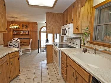 Fabulous size! *UNIQUE!* Home has many custom updates including Amish built bookcase in LR and French doors, bay window, gas fireplace, updated kitchen with Corian counters, oak cabinetry, pantry, beautiful 1st floor bathroom w/ skylight, Kohler fixtures, glass bowl sink, Italian marble. 2 Skylights (one in entry, one in bathroom), large 1st floor family room w/covered deck, tongue and groove vaulted ceiling. Home also features newer furnace, central air, hot water tank. Unbelievable amount of space!
