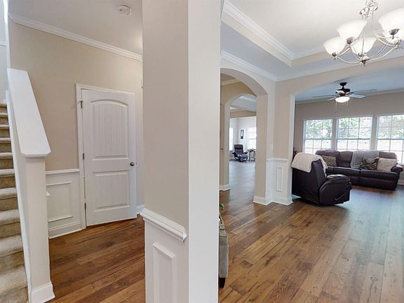 - RoomLivingRoomFeatures: Ceiling Fan(s), Fireplace, High Ceilings, Molding, Floors-Laminate, Ceilings-High (over 9 Ft)
