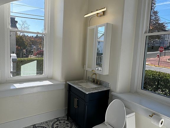 Elegantly finished apartment in a completely renovated and repurposed historic Church. This unit boasts lots of light, ceiling fan, granite counter top, custom soft close cabinetry, gorgeous bathroom, loads of closet space, and easy to keep lvt flooring. The ceilings are 10 ft high. Heating and cooling is via a highly efficient heat pump system.