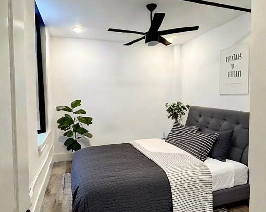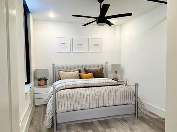 The 200 square-foot bedroom features an oversized double closet and its own private stained-glass window.