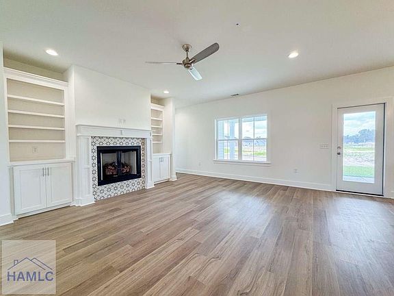 Spacious 4-bedroom ranch plan on a large lot in Midway! Close to Hwy 17 & I-95! The Newport plan features a welcoming front porch with foyer entry. Formal dining room adjacent to the foyer with views to the front yard. A fireplace with built-ins impresses in the family room! Three bedrooms & a hall bath are all located off the family room. Step out to the back porch to enjoy your backyard from the family room! The kitchen sparkles with ample cabinetry, quartz counters & tile backsplash- plus a walk-in pantry. Enjoy an extended-depth island perfect for casual dining & entertaining! Take a hallway off the kitchen to the laundry room, half bath, garage access & the primary suite! Your secluded primary suite features plank flooring, and access to the back porch, along with a private bath & large walk-in closet. Tile flooring, soaking tub, tile shower with pan insert & quartz vanities are all features of the private bath.