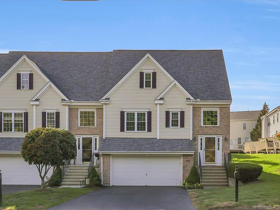 Experience refined living in the coveted Cobblestone community! This impeccably maintained end unit boasts a dramatic two-story foyer and gleaming hardwood floors. The newly designed black-and-white chef's kitchen is a true showpiece, featuring granite countertops, a striking custom backsplash, and premium stainless steel appliances. First floor den/office offers work-at-home flexibility. Every detail has been thoughtfully curated, with major upgrades including new windows, two-zone furnace, 50-gallon hot water heater, and high-efficiency A/C with enhanced tonnage. Upstairs, the primary suite is a luxurious retreat, complete with an expansive walk-in closet and a spa-inspired bath showcasing a granite vanity and custom tile shower. A second renovated full bath and upper-level laundry offer added convenience. The fully finished lower level provides versatility with its own (3rd) full bath, ideal for hosting guests, creating a private in-law oasis, or family/gaming room. Enjoy a private deck overlooking lush grounds and an oversized 2-car attached garage with new insulated garage door and opener. Ideally situated near shopping, dining, and recreational amenities, with easy access to major highways, this move-in ready home defines luxury, comfort, and style.