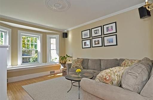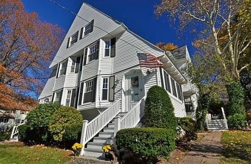 Beautifully maintained Half Duplex offering 3 finished levels of living space, lots of beautiful amenities, an open feeling & high ceilings. The first floor includes a sunny Living Room with a bay window, a Dining Room with a built-in china closet, walk out bay window and wainscoting. The kitchen has wood floors, a built in dining space and back entrance to the deck and yard. There is also a 3 season sun room and a half bath. The second floor has 3 spacious bedrooms. The Master Bedroom has a bay window & walk in closet, the nursery is precious and offers lots of custom features. The full bath was recently gutted and offers a beautiful soaking tub with a rainshower shower head, high end fixtures & double pedestal sinks. The 3rd floor has a finished 4th Bedroom that is currently being used as a home office. Updates include full bathroom, vinyl siding, roof, windows, central A/C, trex deck and more. There are wood floors throughout. Walk to the Hopedale Park and Pond.