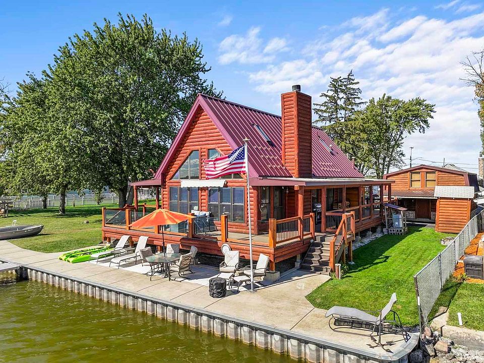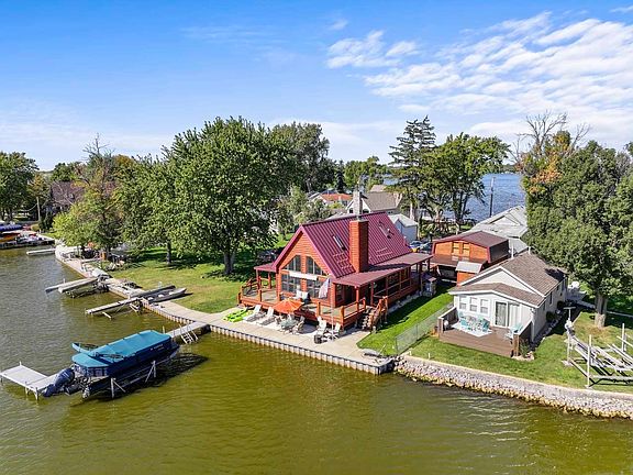 Dreaming of lake life? This one-of-a-kind A-frame log cabin sits right on the shores of beautiful Pistakee Lake-offering jaw-dropping views and the kind of peace you just can't buy anywhere else. Step inside and be wowed by many windows and skylights that flood the space with natural light and showcase panoramic water views. The open-concept living area features a gas fireplace, and that warm rustic charm only a log home can deliver. This home features heated floors throughout the main level and boasts a new composite wrap-around deck, perfect for morning coffee or evening sunsets. You'll love the electric sauna for post-boat relaxation. Outside, the perks keep coming-new dock and boat lift installed in 2023, plus a 2-story, 2-car garage with a Storm Safe Shelter and more storage than you'll ever need. There's also a storage shed, carport, and additional parking on the asphalt driveway. Don't forget about the retractable awning on the back of the deck, offering shade while you take in the lake views. Whether you're boating, ice skating, or ice fishing-Pistakee Lake offers year-round fun and unbeatable beauty. This is not just a home-it's a lifestyle. Your dream lakefront retreat is finally on the market.
