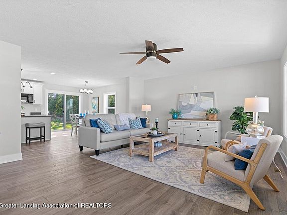 Step inside this beautiful newly constructed 2-story home and be WOWED! Located in Potterville, this 3-bedroom/2.5 bath home is tastefully designed with an open spacious floor plan. The soft gray walls, white trim and large, decorative windows flood the space with light! Oversize living room is open to the dining room and a beautiful bright white kitchen with contrasting high-definition black countertops and black stove & microwave. The main level flows from room to room with beautiful neutral luxury laminate. Off the kitchen is the large main floor laundry room and a guest ½ bath leading to the attached 2-car garage with door opener. The open staircase in the living room is stylish with white trim/railing and black spindles. Upstairs is the ensuite primary with decorative shelves and a walk-in shower. The level is finished with a hall bath and two additional bedrooms. Full basement offers an egress windows for future expanded living space. The home's exterior is dressed with red vinyl siding and white trim. The front covered porch is spacious and the perfect place to enjoy morning coffee & evening sunsets. Located in close proximity to parks and freeways yet offering the quiet of a smaller community life. Schedule your tour today!