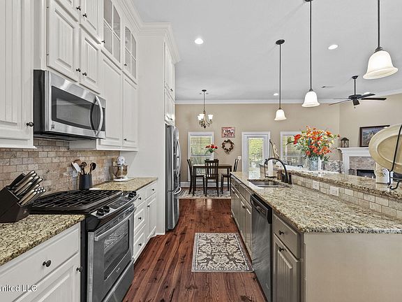 Located in the desirable Fieldstone neighborhood, this beautifully maintained home offers three spacious bedrooms and two full bathrooms, all centered around an inviting open floor plan. The living spaces feature stunning heart pine floors and an easy flow perfect for everyday living or entertaining. The fantastic kitchen boasts granite countertops with a subway tile backsplash, stainless steel appliances, and ample cabinetry that extends to the ceiling for extra storage. A large breakfast bar provides additional seating and serving space, while the adjacent dining area is enhanced by a charming brick accent wall. The laundry room is both functional and stylish, complete with built-ins, cubby storage, and a convenient desk area ideal for keeping household tasks organized. Step outside to a private backyard that backs up to a wooded area—complete with a large shade tree for relaxing afternoons. This one is move-in ready and won't last long—call your favorite Realtor today before it's gone!