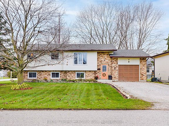 First time on the market in 35 years! This well-maintained, raised bungalow sits proudly on a desirable corner lot in the heart of West Lorne, just 3 minutes from the 401. Offering 3 bedrooms and 2 full bathrooms, including a convenient cheater ensuite, this home is designed for comfort and easy living. The bright main level features a large eat-in kitchen with plenty of cabinetry and a patio door leading to a rear tiered deck, perfect for morning coffee or evening BBQs. Downstairs, a spacious rec room with a cozy gas fireplace provides the ideal spot for family gatherings or movie nights. An attached deep single-car garage offers excellent storage or workshop potential, while the extra-wide driveway provides ample RV parking. Recent updates include an updated forced air furnace and A/C (2022) and an updated roof (2019), giving you peace of mind for years to come. The fully fenced backyard offers privacy and includes a fish pond and convenient access to the side street, making yard maintenance and storage a breeze. A wonderful opportunity to own a solid, lovingly cared-for home in a friendly small-town community-don't miss it!