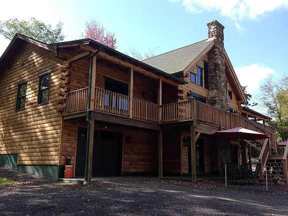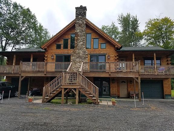 COMING OFF THE MARKET FOR THE WINTER. SEE YOU IN THE SPRING!! This one of a kind log home is built by Allaire and son of Real Log Homes built in 2009. 4000sq.ft. 2 acres. 8 rm. 3 br. 2 bath, loft, shed, 4 car garage heated. 3 floors all finished. Sit outside on the 70' trex decking enjoying the weather drinking your favorite beverage. Huge fireplace w blowers and wood stove insert, Gas stove, SS appliances, Completely insulated. This home needs nothing and is absolutley beautiful from the second you walk in the front door. Open kitchen has plenty of room for entertaining, gathering around the fire set inside the stone fire place is holiday perfection. The loft is perfect for a study or another bedroom. The finished basement is well insulated with radiant heated floors, use as guest quarters, childrens play area or a gaming room. Possibilities are limited to your imagination. This home is a must see!