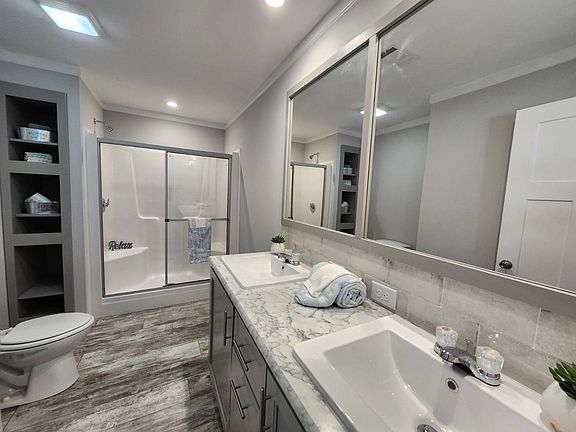 Lot Rent Special! $99 per month for 1 year! Brand-new 2-bedroom, 2 bath Palm Harbor home with warranty, waiting on its first owner! This lovely and affordable home comes partially furnished with a brand new Livingroom and dining room set! This home features, a spacious primary suite with ensuite bathroom, lovely neutral toned countertops with double sinks, linen closet, large walk in shower, walk in closet, spacious secondary bedroom with closet, large secondary bathroom with shower/tub combo with plenty of counter and storage space, spacious open living room with new furnishing, elegant modernized grey country kitchen, abundant cabinet space, brand new kitchen appliances, light grey tones throughout, light grey wood like flooring, light grey carpeting in bedrooms, charming windows with blinds, interior laundry room, large covered front porch patio, spacious attached shed, long carport, nestled in a lovely cul-de-sac with a large partially private back yard. A must see! for you to really appreciate all the great qualities this home has to offer. Situated in the sought-after 55+ community Sugar Mill, this residence offers a vibrant and inclusive environment for all adults. The amenities within the community are second to none, with a range of offerings to suit every interest and lifestyle. Take a refreshing dip in the sparkling pool, or host gatherings in the club house with a convenient serving kitchen. Movie nights are made memorable in the multi-media room, while RV/boat storage ensures your adventurous spirit is always ready for the next excursion. Do not miss the opportunity to make this your forever home! With lot rent priced at $620.00, you will enjoy the best of both worlds - an affordable lifestyle in a premium community setting. Experience the epitome of retirement living in this exceptional mobile home. Schedule your showing today and start envisioning your future in Sugar Mill!