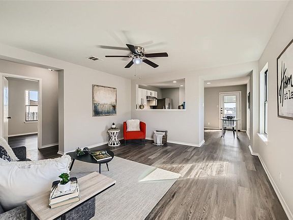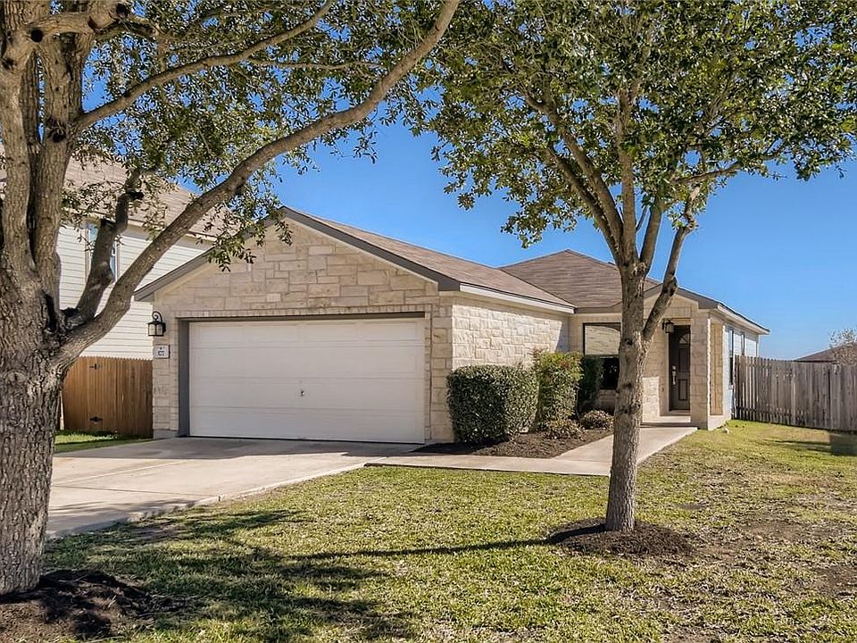 Cute home nestled on a manicured lot in Kyle, Tx. This single story home offers 4bedrooms, 2 baths, and a spacious living area. Master retreat is spacious and has a large walk in closet. Hard flooring throughout - no carpet! Updated fixtures, fresh paint, and more. Enjoy the open concept living area, walls of windows allowing an abundance of natural light. Phenomenal neighbors and friendly community that looks out for one another. Residents enjoy the community amenities including a pool, park, playground, and picnic area with grills. Great nearby shopping, grocery store, food, and hardware stores. Just 15 minutes to the beautiful San Marcos River with fishing, tubing, and kayaking. Easy access to I-35. Comes with refrigerator