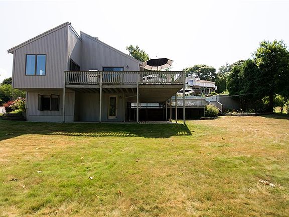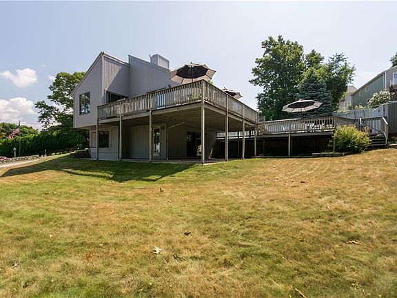This is home- a happy, bright, and fun home. Enjoy a modern feel living in this spacious contemporary split level with a wonderful backyard designed for entertaining. See the Sakonnet River in the distance from the multo level wrap around decks surrounding the house and an ingound pool. The living room is cathedraled has several sliders for easy entry onto the wrap around decks and a working fireplace. The kitchen features granite counters and opens into the dining room. Three bedrooms and a full bath complete the first level. A family room/den has a working wood stove and is located on the lower level. Also on the lower level is a room waiting for you to make your own- an office, game room, craft room- whatever you need it to be. A full bath is also located on the lower level. The home also has a two car garage. 2584 square feet on .34 acres. Close to shopping areas, 1/2 hour from Newport and Providence. Be in your new home for the Holidays.