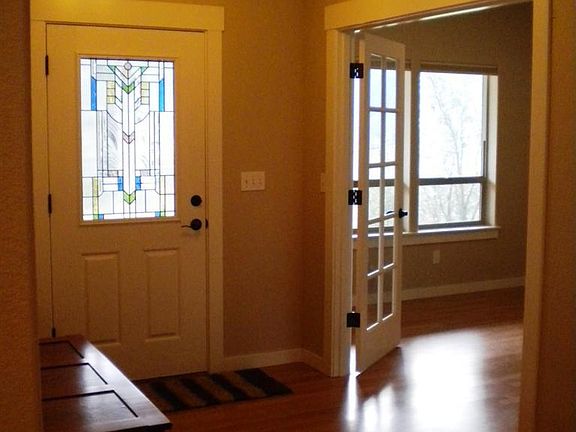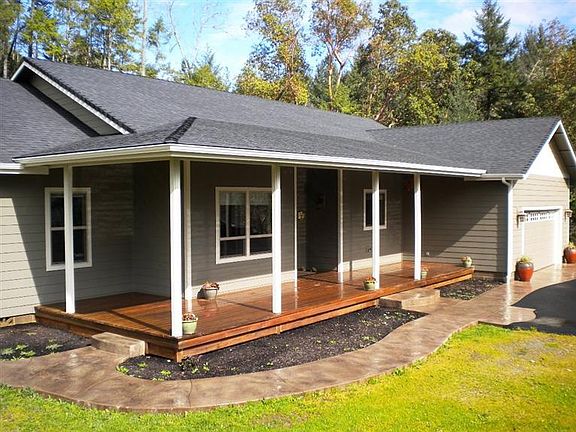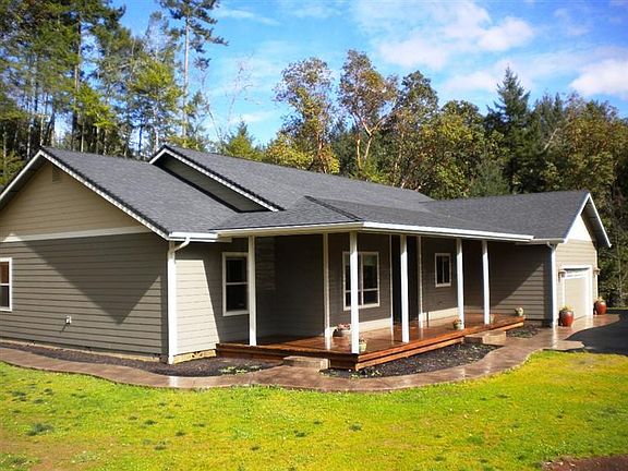 Beautiful, like new custom home sits atop a knoll on 3.54 acres, a twelve minute drive west of Grants Pass. The spacious 2150 sq. ft. floor plan allows for a huge living area and over-sized rooms. Terrific kitchen offers plenty of workspace and up-to-date stainless steel appliances. Also walk-in pantry. Gorgeous laminate wood floors gleam throughout, custom tile graces the master bath soaking tub. There's also double glass doors lead to office/den. Outside, nice extras include stamped concrete walkways, a paved drive and additional parking.