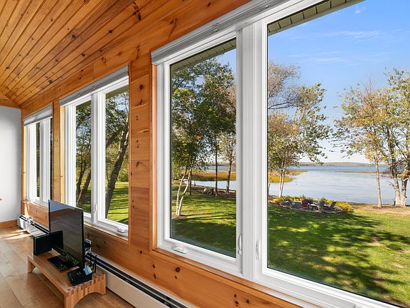 Private shorelineSandy beachExpansive lake-facing windowsCozy wood stoveRadiant heated floorsUnfinished atticFire pit