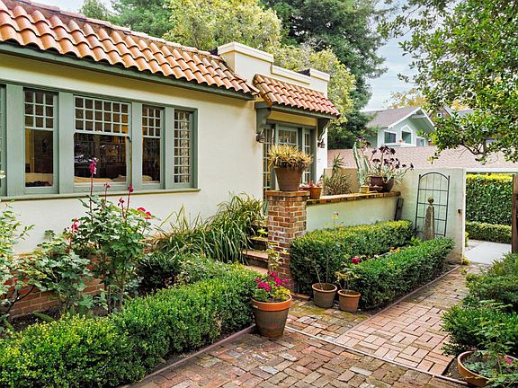 Private fenced-in gardenWood-burning fireplaceBeautiful period detailsSpanish-style single-level homeOpen-concept chefs style kitchenExpansive counter spaceVintage windows