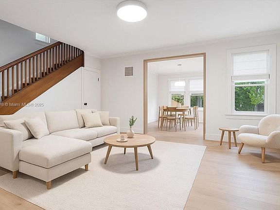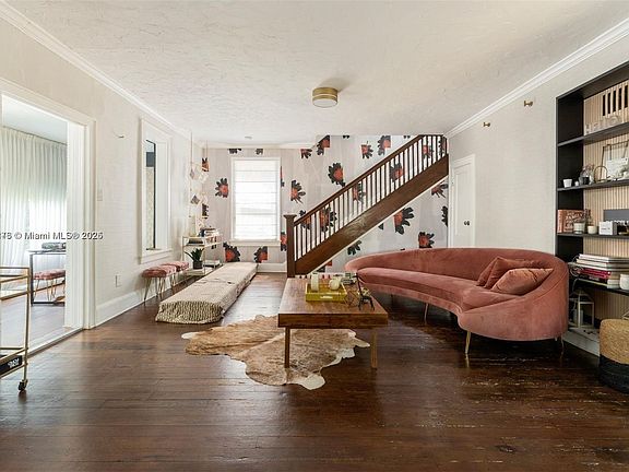 Beautifully renovated 4BR/2BA home in the heart of the Design District. Originally built in 1924, this unique residence features high ceilings, fireplace, Florida room, dining room, great room, and updated kitchen with stainless steel appliances. First floor offers a guest bedroom/office, full bath, and laundry room. Second floor includes the primary suite with access to a large balcony, plus 2 additional bedrooms and full bath. Enjoy a spacious front and backyard with wood deck, wrought iron gates, and new main door/awnings. Perfect for entertaining and just steps from world-class shops, dining, and nightlife. A true jewel in prime location!