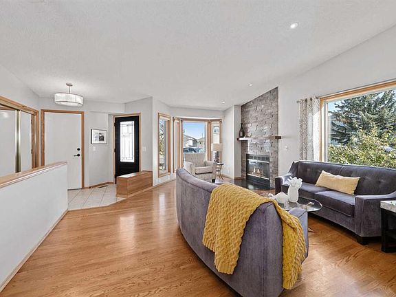 Pride of ownership shines in this beautifully maintained Stepper-built bungalow, offered for the first time by its original owner. Perfectly tucked away on a quiet, established street in Hidden Valley, this home offers the ideal blend of comfort, convenience, and low-maintenance living. Bright and welcoming, the main floor features vaulted ceilings that create an airy sense of space. The inviting living room centers around a cozy wood-burning fireplace (with log lighter)—the perfect spot to unwind or entertain. The well-designed kitchen makes mealtime a pleasure, with richly painted cabinetry, stainless steel appliances, and easy flow to the adjoining dining area. A thoughtful floor plan separates the living areas from the bedrooms, providing privacy and tranquility. The generous primary suite offers a large ensuite with double sinks, a deep soaker tub, and a separate shower. A second bedroom and full bath complete the main level. You’ll love the timeless on-site finished hardwood throughout main floor—no carpet anywhere in the home, just elegant hardwood, LVP, and tile for easy care. The fully developed lower level extends your living space with a large family room featuring a three-sided gas fireplace, games area, home office, third bedroom, and full bath—ideal for visiting guests or relaxed evenings at home. Step outside and discover your own private oasis: a beautifully landscaped, treed yard with maintenance-free stamped concrete patio, vinyl fencing, and mature perennials that offer beauty without the work. Car enthusiasts or hobbyists will appreciate both the double attached and single detached garages (with power and opener). Additional highlights include triple-pane Polar Rayomax windows, air conditioning, built-in vacuum, newer furnace (2021), and even a hot tub includedfor year-round enjoyment. Situated on a corner lot with no sidewalks to shovel and quick access to 14th Street and Country Hills Boulevard, this is a rare opportunity to enjoy single-level living in a mature, peaceful setting close to parks, pathways, and community amenities. Come and see how effortless moving into this turn-key home can be.
