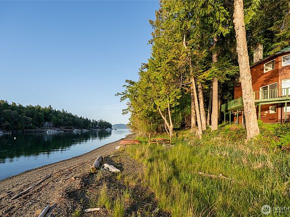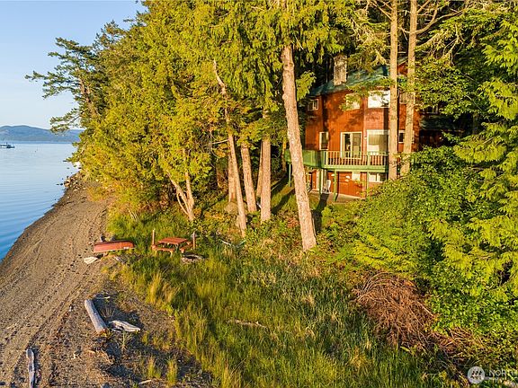 Experience waterfront living along the tranquil shores of Neil Bay. This two-story, daylight basement home features 2 bedrooms up, 2 small down, 2-1/2 baths, granite countertops in kitchen, open living/dining area with cozy wood stove. With its large waterfront deck, this home invites indoor and outdoor living. Launch your kayak from your own beach, with firepit and picnic area. Located in a highly desirable neighborhood minutes to famous Roche Harbor Resort, with easy access to its restaurants, spa, grocery store, pool, marina, and charming shops. Beautifully wooded lot provides privacy and serenity. Detached two-car garage connects to a spacious shop area with an unfinished loft and add’l. storage room, perfect for your toys and hobbies.