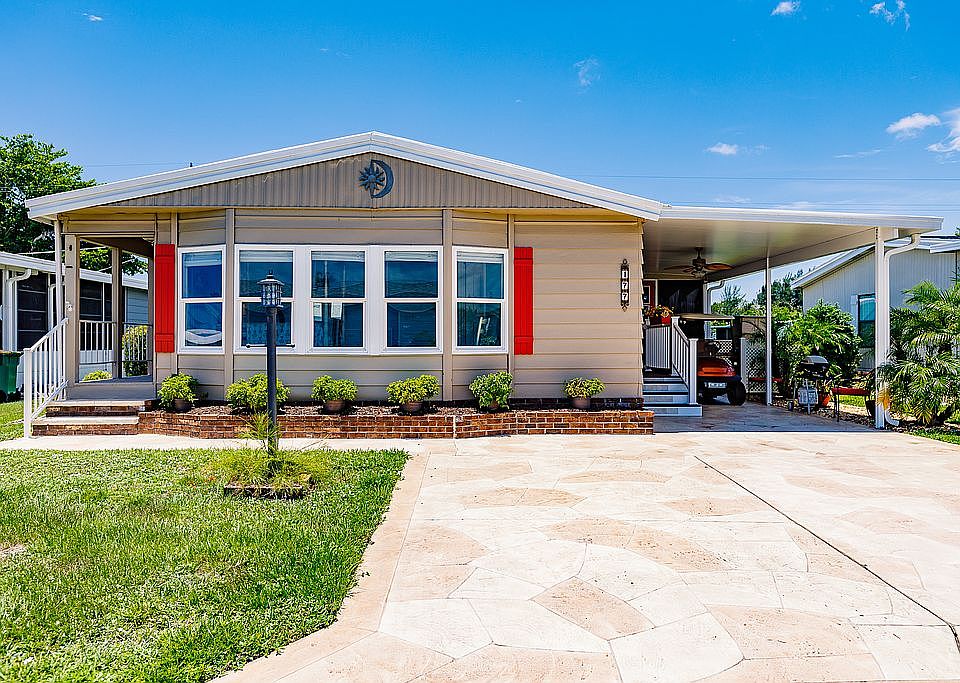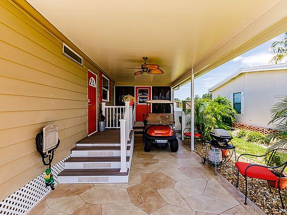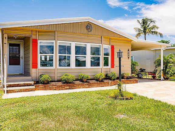 Come and enjoy one of the most desirable 55+ Manufactured Home Communities in Naples. Windjammer Village is a beautifully well-maintained gated community. It boasts low HOA fees and is centrally located to Beaches, Shopping and Dining. This freshly painted pristine 2-bedroom, 2 bath home has one of the best floor plans, with newer laminate and tile floors throughout. The many upgrades include a new porch, keyless entry, updated Kitchen with Stainless Steel appliances, renovated Bathrooms. This home has a newer A/C unit, Water heater, replacement Windows and Carport. The enclosed Lanai with its own A/C and new roof, extra wide resurfaced Driveway, 2 Sheds, 2nd Refrigerator in Shed, new Insulation and vapor barrier installed under the home. Amenities include Community Pool and Spa, Club house, BBQ area, Bocce ball, Shuffle board, Tennis/Pickleball court. Additional Storage area for RV’s, Boats etc. Pets are allowed.