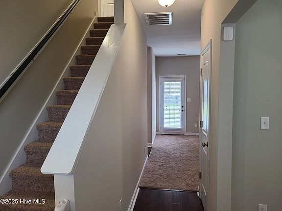 Beautiful 4 bedroom 2.5 bath home is located in The The Village at Folkstone. Entering the first level of the home from the rocking chair covered front porch, you will enter a foyer with stairs in front to the upper level, hallway to the living room, office/den space on the left of entry, a dining room to the left of entry, and the half bath. The lovely kitchen has plenty of counters, storage space, and stainless steel appliances. There is also a small breakfast nook off the kitchen overlooking the backyard. Access the fenced in backyard from living room onto a large deck perfect for entertaining or just enjoying a breezy cool evening. Nice shed in the backyard for extra storage space. On the upper level, you will find a beautiful master bedroom with walk in closet space and a huge master bathroom. The other 3 bedrooms, hall bath and laundry are also on the upper level. The home is a short drive to local area restaurants, grocery stores, shops, the back gate, Stonebay and the local beaches. It's also located between Wilmington and Jacksonville for quick access to 17 for daily commutes.