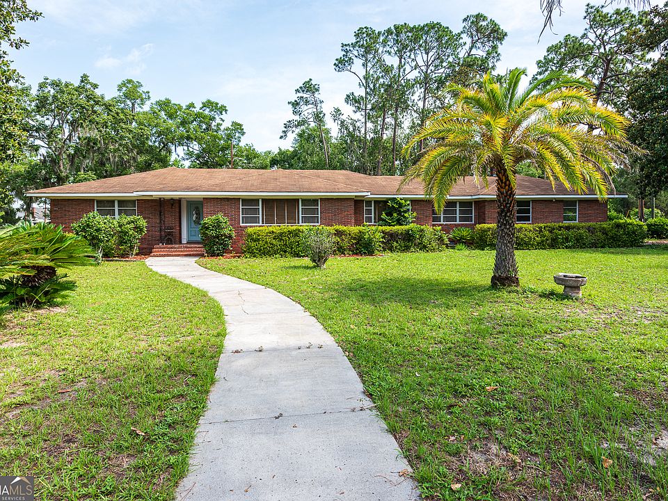 Own an entire block of Folkston with This Spacious Vintage Charmer! Situated on just over an acre, this classic 3-bedroom, 2-bath brick home offers 2,577 square feet of comfortable living and is just minutes from the heart of town! Inside, original hardwood floors flow throughout, leading to a spacious owner's suite perfect for unwinding, working, or relaxing. You'll also find a welcoming living room, a formal dining area ideal for hosting, a cozy kitchen, a versatile wood-accented office/bonus room, and a practical indoor laundry/mudroom. Outside, you'll love the fully fenced yard and large patio-perfect for pets, relaxing, or storing recreational gear. With mature Magnolia trees and lush landscaping, the backyard offers exceptional privacy and a peaceful setting. No distractions-just quiet living with room to grow! Schedule a showing today!
