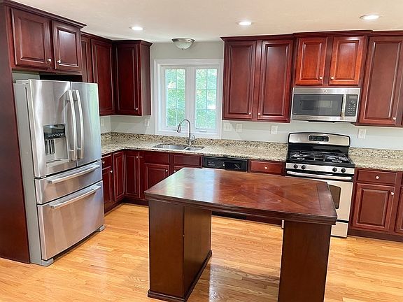 Conveniently located 4 bedroom, 3.5 bath split-entry gambrel in North Billerica. The kitchen features cherry cabinets, granite countertops, a breakfast area, and a large pantry closet. The first floor includes a separate dining room and living room, all with hardwood flooring. Second floor offers a large front-to-back master suite with a full bath and walk-in closet, plus 2 additional bedrooms and a full bath. 4th bedroom is in the lower level with a 4th bathroom and family room. Basement has interior access plus a rear walk-out to the yard. This home is freshly painted and ready for new owners!