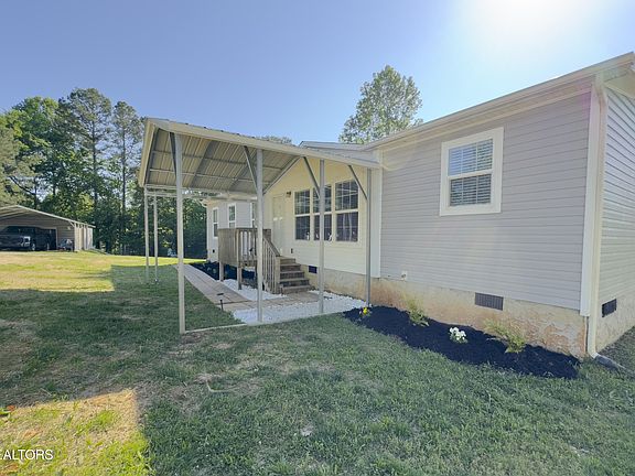 MOTIVATED SELLER! Enjoy peaceful country living with this 3-bedroom, 2-bath home situated on over 3 acres, offering beautiful mountain and countryside views. This 1,568 sq ft home features an open-concept layout with a spacious living room and dining area that flows into kitchen with oversized island—perfect for entertaining or relaxing with family. Split-bedroom floor plan, with a generously sized master suite that includes a walk-in closet and an en-suite bath complete with a freestanding tub, walk-in shower, and dual-sink vanity. Back door entrance features mudroom with laundry hookup. The home has a private well, with public water connection available. Exterior Features include: Covered RV parking area with water, electric, and septic hookup. A two-car carport with an attached workshop, and two storage buildings. There's also a chicken coop or greenhouse space. The property provides plenty of room for gardening, or starting your own mini farm. Don't miss your chance to enjoy country living with modern comforts! Conveniently located just 12 minutes from Ocoee River outdoor adventures and 20 minutes to Cleveland.
