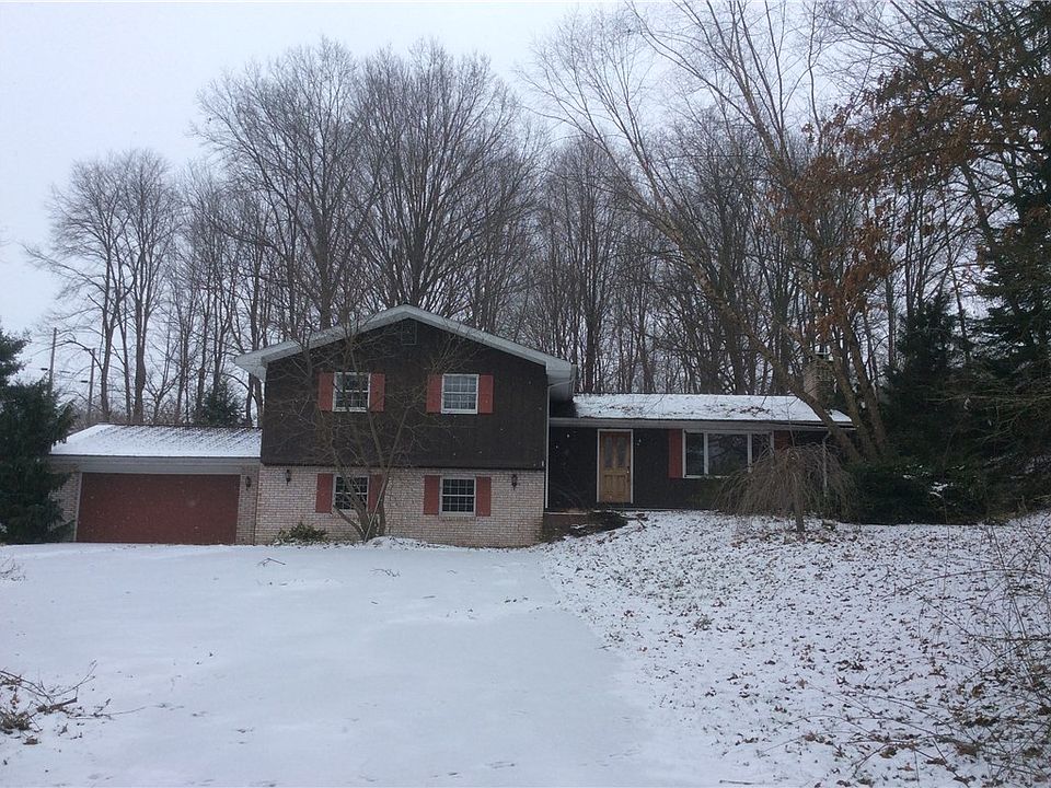 Great Floor Plan for this 3 Bedroom, 1 3/4 bath split level. This home is nestled on a beautiful wooded lot. An updated Oak kitchen, LR w/ Wood Burner insert and Sunroom addition are some of the nice features of this home. Lower level family room area and attached 2 car garage plus detached metal garage. Needs TLC.