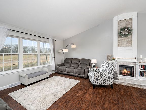 Situated on just over 1 acre, this beautifully updated split-entry home offers a perfect blend of modern elegance and functionality. The open-concept design is highlighted by rich hardwood flooring and abundant natural light throughout. The gourmet kitchen boasts high-end ZLINE stainless steel appliances, a chic white backsplash, and luxurious granite countertops—perfect for both everyday living and entertaining. The home features three generously sized bedrooms, including a serene primary suite with a beautifully updated ensuite bathroom. Relax in the cozy living area with a built-in electric fireplace, adding warmth and charm to the space. The finished basement provides additional versatile living space, ideal for a media room, office, or play area. Outside, the expansive yard offers privacy and room for outdoor fun, while the two-stall garage ensures ample storage and convenience. This home truly has it all—modern upgrades, comfort, and a prime location in Center Township!