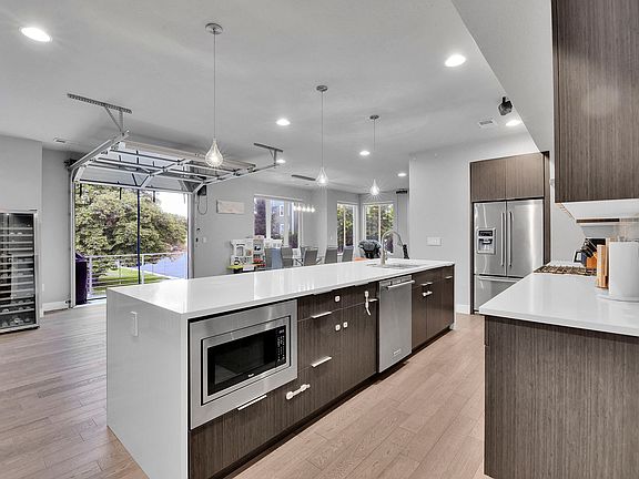The home features an expansive open floor plan, highlighted by vertical garage style glass door off the living area, great for entertaining! The kitchen boasts high end finishes and stainless steel appliances. Huge family room, bonus area for office, and wine room or work area. There are two large bedrooms on the top level, the primary has a walk-in closet and both bedrooms have separate en-suite baths. Two bedrooms on the lower level with a luxurious full bath. Tons of storage and bonus spaces throughout. 3 private outdoor areas!