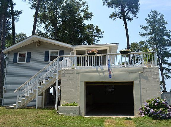 Two bedroom one bath raised waterfront home with a wide view of the Piankatank River. Elevated deck, covered patio, sun room, 640 sq ft garage, 80 sq ft storage/work shop.