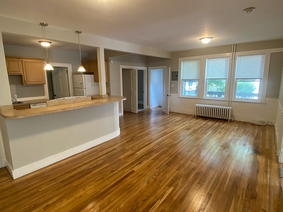 Sunny and spacious two-bedroom in a great Quincy neighborhood on Hospital Hill. Walking distance to Quincy Center MBTA station. Stacked washer and dryer in unit. New stainless appliances installed since photos taken. Open-concept kitchen-living area on building's first floor. 1,000-square feet. Full tiled bath with double sinks. Sun-porch. Smoke free building. One off-street parking spot. Tenant pays gas heat and electric. One-year lease. If interested, send a brief note about yourself, a note about room-mate, what you do for work and phone number. Previous landlord and employer references checked.