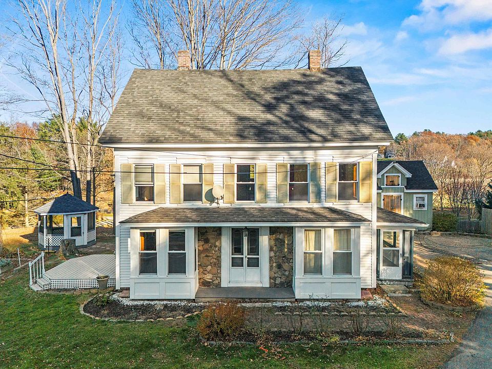Exceptionally located (one-level living potential) farmhouse in Stratham, directly adjacent to the prestigious Golf Club of New England. This expansive property offers rare mixed residential/ commercial versatility and sits amid open farmland with extensive town-designated protective buffer related to the Hampton municipal well. Features include a custom stone water fountain and koi pond, multiple mature fruit trees (apple & peach), grapevines, raised garden beds, gazebo with electricity, front porch, farmers porch, and a deck with awning. Maintenance-free vinyl siding and extensive custom stonework add to the exterior appeal. Inside, enjoy wide pine floors, tile, updated windows, skylights, fresh paint, 2 full baths, a large living room, game/pool table room, and a huge walk-in pantry. The detached workshop is fully outfitted with electricity, vacuum system, gas heat, and AC. Located in the Exeter School District, close to Portsmouth, beaches, and commuter routes. A unique blend of charm, functionality, and flexible use in one of Stratham’s most desirable areas. Showings start at Open House on Saturday & Sunday November 22-23.