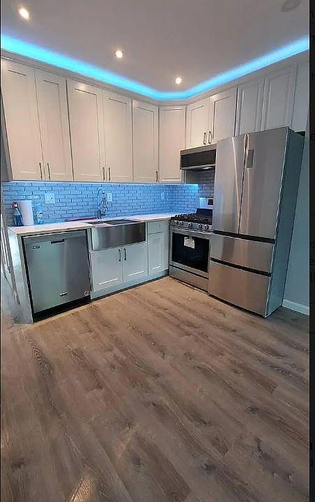 Newly renovated apartment with quartz counter tops and stainless steel appliances. Crown molding with lighting throughout unit. Lights in closets. Towel warmers and blue tooth speak in bathroom. 7 minute walk to the metro north train station.