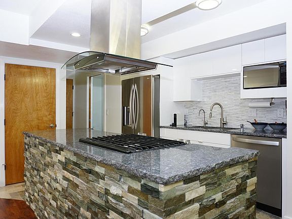 - Kitchen: Garbage Disposal, Microwave, Island, Hood Over Range, Refrigerator