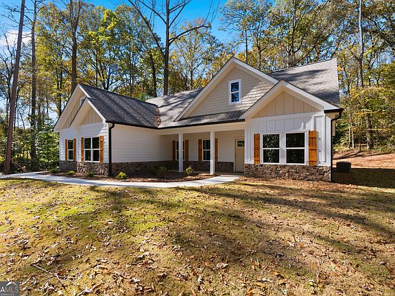 Beautiful New Construction home on a private 1.5 acre lot with mature trees. Spacious open concept living room, dining room and Gourmet kitchen with designer cabinets. Tile backsplash, solid surface countertops. LVP flooring throughout home. Exterior features include Hardy plank siding, architectural roof and sod on all sides of the home. Double garage with openers. Carrier HVAC system. Covered front and rear porch with stain grade wood ceiling. Minutes to I-20