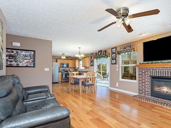 Finished basementGas fireplacePrivacy fenceOpen floor planNew sunroom carpetReal hardwood floorsFirst floor laundry