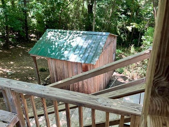 1 bedroom with 2 extra rooms.Nestled in the trees this cozy home is waiting for you !The kitchen has oak cabinets in abundance as well as room for eat in table. The dinning area is attached to the kitchen that leads out to the enormous deck. This deck is huge and it is partial covered. Inside there is 3 bedrooms and 1 and 1/2 baths as well as good size den. This home is being offered AS IS and will only go conventional or cash, information taken from CHR buyer and buyers agent to confirm.