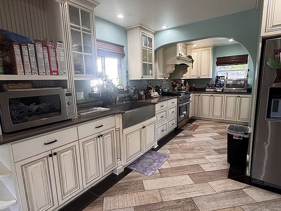 One-of-a-kind custom home inspired by a 1910 farmhouse, blending timeless charm with modern luxury. Features a spacious open layout, custom kitchen, and cozy dining nook. Enjoy intricate tile work, three walk-in tile showers, and a master suite with French doors leading to a private balcony. Includes a large heated/cooled shop with two full baths and 1,784 sq. ft. of guest quarters perfect for extended stays or additional living space.