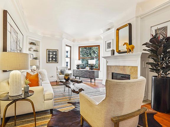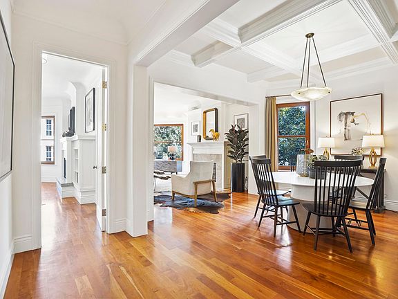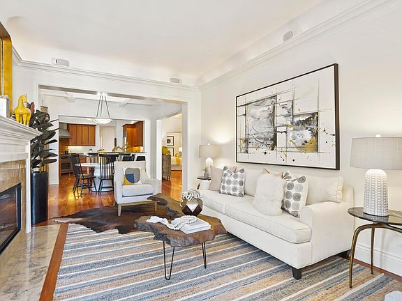 Spacious approx. 1,500 sq.ft. (per tax record) flat in a classic Edwardian building featuring a completely renovated open floor plan with chef's kitchen, stainless steel appliances including chef-grade Dacor gas range/stove and Bosch dishwasher, granite counter tops and breakfast bar. The adjacent dining room enhanced by period box-beam ceilings leads to an elegant living room centered by a marble fireplace. The master bedroom boasts a marble fireplace, a stylish ceiling fan, a large walk-in closet and a remodeled bath with upgraded Waterworks fixtures. The second private bedroom with an artful molded glass chandelier is located near the second bath, with easy access to a large bonus room fully remodeled for use as a walk-in closet which could easily double as an office or bonus room. Other home appointments include: alabaster chandeliers, Brazilian cherry hardwood flooring, Bose surround sound audio system, radiant heat, Albertini windows, in-unit Miele laundry appliances and storage.