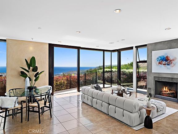 Welcome to this extraordinary soft contemporary home, designed by Tim Nichols and built in 2010, featuring breathtaking north-facing views of Main Beach, Hotel Laguna, and Catalina Island. Situated above downtown Laguna Beach on a wide, quiet cul-de-sac, this beautiful property offers two levels of luxury living with three en suite bedrooms. Enter through the 10 ft. glass front doors to find abundant natural light, high ceilings, and custom lighting that highlights the stylish limestone and bamboo floors. The spacious living area, adorned with floor-to-ceiling windows and pocket doors, effortlessly connects indoor and outdoor spaces. The modern chef's kitchen is equipped with top-of-the-line Viking appliances, perfect for entertaining family and friends. The lower level includes a generous family room, wine room, spacious, 2 person office, and separate laundry room, catering to all your leisure and work-from-home needs. Relax in the master retreat, complete with an in-ground spa and serene ocean view exterior sitting area. Each level of this impressive home features multiple patios, with the lower level patio offering an exterior fireplace, fountain, built in DCS BBQ, and ample seating for dining and entertaining. Experience the best of Laguna Beach living, with award-winning schools, fine dining, luxury resorts, shopping, art galleries, and Southern California's most beautiful beaches just a minutes away. Don't miss the opportunity to make this elegant, designed gem your dream home!