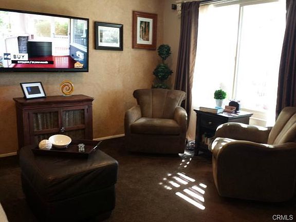 Located in the highly desirable Heritage Village, this beautiful 3 bedroom 2.5 bath townhome is tastefully decorated and upgraded. The windows are upgraded to dual pane for maximum comfort. The living room is updated with recessed lighting, crown molding, a tiled fireplace with custom fireplace surround and mantle. The gourmet kitchen is designed with lots of cabinets, stainless steel appliances, 5-burner cooktop (with center grill burner) and a large counter space & breakfast bar. The main level (w/ travertine & plush carpet) also features a formal dining area, powder room and a laundry room area with lots of storage / cabinets. The second floor offers a large master bedroom, updated master bath (custom carpentry, quartz counter tops and elegant tiled shower, and a large custom built-in walk-in closet). Two more large bedrooms w/ plenty of sun light. The upstairs bathroom is appointed w/ tiled flooring and tiled bathtub wall. The spacious serene backyard is perfect for BBQ, entertaining and relaxation. The two-car garage has custom flooring and includes free standing cabinets and shelves The resort like community amenities include 2 swimming pools, SPA, play ground areas, recreation room and beautiful landscaping.