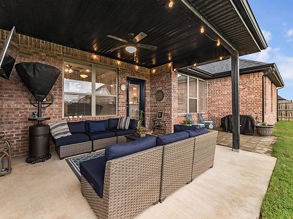 Wood privacy fenceBrick and stoneWalk-in closetBeautiful over-sized tiled showerDual vanitySplit floor planCovered patio