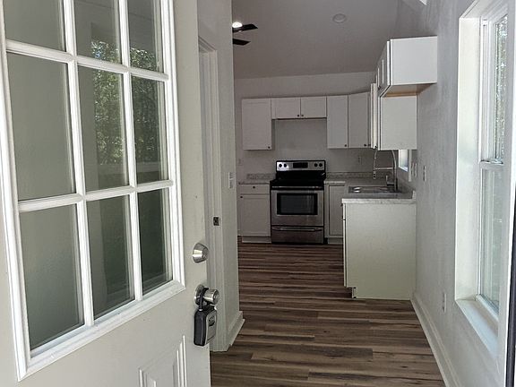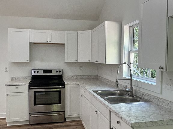 Updated bathNew gravel drivewayVaulted ceilingsNew kitchen cabinetsExterior door
