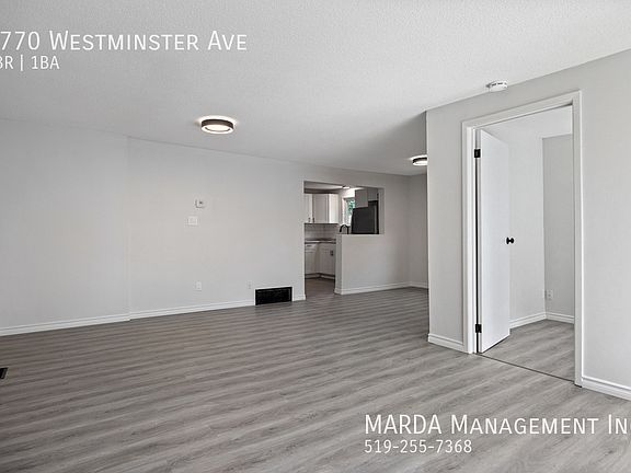 Welcome to 1770 Westminster, a newly renovated and ultra-modern one-floor ranch located in a charming neighbourhood just off Pillette Rd. This beautiful home is perfect for families or professionals, offering both style and convenience with an array of amenities nearby. Just moments from parks, stores, restaurants, and cafes, you'll have easy access to everything you need. Tecumseh Rd is just minutes away, featuring FreshCo, Shoppers Drug Mart, Giant Tiger, KFC, Domino Pizza, and more. Plus, it's close to several schools, including WF Herman Secondary, FJ Brennan Catholic High School, and Coronation Public School. This home boasts a single-car attached garage and driveway for convenient parking. Step inside to a spacious living room perfect for entertaining or relaxing with family. The beautiful eat-in kitchen is equipped with brand-new stainless steel appliances, bright white cabinets, and a stunning countertop, making meal prep a breeze. There are three bedrooms, each featuring its closet, and a modern three-piece bathroom with a large vanity, mirror, and stylish tiled shower. The laundry room offers extra storage for added convenience. Step outside to enjoy the large fenced-in backyard, shaded by tall trees and featuring a spacious wooden deck ideal for enjoying your morning coffee or spending time with family. First and last month's rent and a credit check are required. This home is professionally managed by MARDA Management, ensuring a seamless rental experience. We offer a 24-hour maintenance line, so you can always speak to a live agent, and easy ways to pay your rent. Don't miss out on this beautiful home! Fenced Back Yard In Suite Laundry Laminate Flooring Pets Allowed Washer/Dryer In Unit