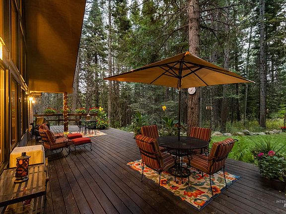 Storybook cabin in McCall just 1.5 miles from Shore Lodge & Rotary Park for Payette Lake access! This property offers seclusion & privacy & features a beautiful mountain home w/3BR, 2.5+BA (inc. master suite on main level), plus a loft. Entertain in the huge great rm featuring a 2 story stone fireplace & picture windows, T&G ceilings, dining & spacious kitchen w/large island breakfast bar. All this leads to the expansive outdoor deck overlooking the beautifully landscaped yard w/auto sprinklers & amazing flower gardens. Upgrades include new granite kitchen counters & SS sink, new washer & dryer, newer propane furnace, & newer detached finished 2+ car gar. w/ 12'x27' bonus rm above. Mud rm w/shower. Quiet, end of cul-de-sac location. NO CC&R’s. Wooded 1.69 acre lot w/ a circular driveway. Peaceful natural setting where you may just find some morel mushrooms & huckleberries! Frequent visitors are birds, fox & deer. Close to town, lake, bike path, area ski resorts & nearby public lands for recreation.