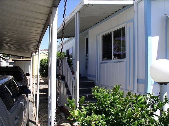 A MUST SEE: Charming doublewide mobile home in Garden West Estates, a vibrant senior community. This well-maintained 2-bedroom, 1¾-bath home boasts a spacious lot with a lovely patio and a large storage shed. The house is in excellent condition, with double-pane windows, two A/C window units for comfort, an in-home laundry, and is being freshly painted in the living areas. Great location near the clubhouse, pool, and car wash area. Includes washer, dryer, microwave, and a large refrigerator with a pull-out freezer. The community has two clubhouses, two pools, a gym off the front pool, and a dog walk area. Walking distance to shopping and restaurants, perfect for convenient, low-maintenance living! Don't Miss It!